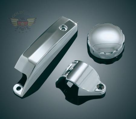 These Dress-Up Kits for the VTX make artwork out of parts that are otherwise pretty dull. All kits include a replacement fluid reservoir cap & a wrap-around reservoir cover. The kit for the VTX1800C/F also places a streamlined cover on the master cylinder. All components feature a dazzling chrome finish.
