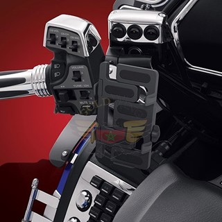Big Bike Parts® introduces an all new Smart Mount for cellphones and GPS units to fit their existing handlebar and armrest mounts used with the Smart Mount Beverage Holders. This holder accommodates most Smartphones and GPS units up to 3 ½” widewhen utilizing the included ½” expansion tabs. Rubber gripped back and foam side tabs hold your equipment securely in place. An additional single web strap is included for those that want a little more personal security on rough roads. Available byitself to fit your existing Smart Mount Beverage Holder Mounts or sold with either a handlebar mount or armrest mount.GPS/PHONE HANDLEBAR MOUNT, For Handlebar Face Clamps, 32-35mm Hole Spacing - Plus d'images (2)