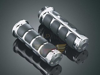 For the rider who demands the ultimate in comfort and style, Küryakyn offers the ISO-Grip. Styled to match the popular ISO-Pegs, they dampen handlebar vibration while providing a sure, cushioned feel for long haul comfort. Because of their unique removable end caps, this is one of the only custom grips available that may be used with stock air reservoir type handlebars.