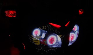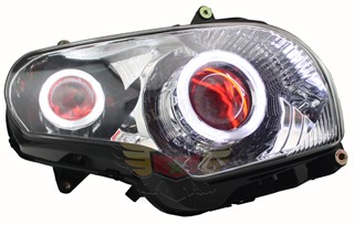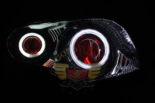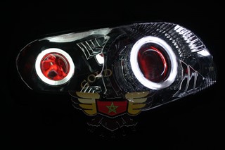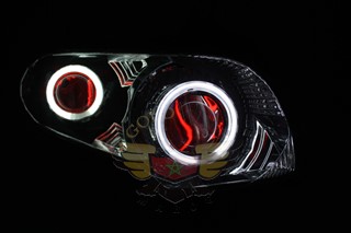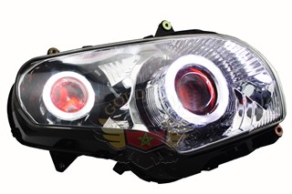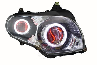 The demon (devil) eye is the CCFL light built inside the projector lens, it will be light up by using demon eye inverter (igniter), different from angel eye, and the demon eye light will emitting out from the projector lens. In most case, the demon eye will be light up at the same time with angel eye. Demon eye light will be disappeared once the main light has been turn on. When the main light be turned off, demon eye appears again! Normally, several different colors are available for the demon eyes, such as Blue, Red and Green. You can choose one desired color among those.