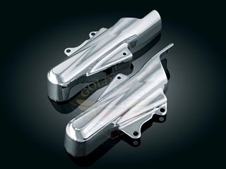 Nothing gets noticed like a nice front end, so create a shining first impression! Küryakyn Lower Fork Skins are sleek, stylized covers that apply a glistening layer of chrome to your plain stock fork sliders. Very easy installation.