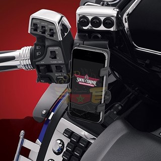 Big Bike Parts® introduces an all new Smart Mount for cellphones and GPS units to fit their existing handlebar and armrest mounts used with the Smart Mount Beverage Holders. This holder accommodates most Smartphones and GPS units up to 3 ½” widewhen utilizing the included ½” expansion tabs. Rubber gripped back and foam side tabs hold your equipment securely in place. An additional single web strap is included for those that want a little more personal security on rough roads. Available byitself to fit your existing Smart Mount Beverage Holder Mounts or sold with either a handlebar mount or armrest mount.