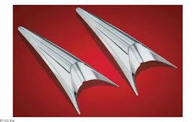 Big Bike Parts® introduces a pair of chrome contoured ABS accents for the Can Am Spyder Roadster front fenders. These attractive accents fit just behind the fender marker lights dressing the fender tips with much needed accents. By adding theses accents the fender marker lights take on a more prominence look. Fits both Spyder RS and RT fenders with double sided tape provided.