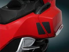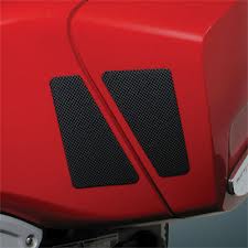 These unique Saddlebag Scuff Pads will protect saddlebags from some unintentional passenger scuffs with a soft carbon fiber look. The embedded carbon fiber pattern is covered in a soft resin gloss to not only look good but be functional. Comes as set of 4 for the Can- Am Spyder RT. Pads measure 6 ½” x 3 ½” at the widest. Special adhesive backing provides durable adhesion in all elements.
