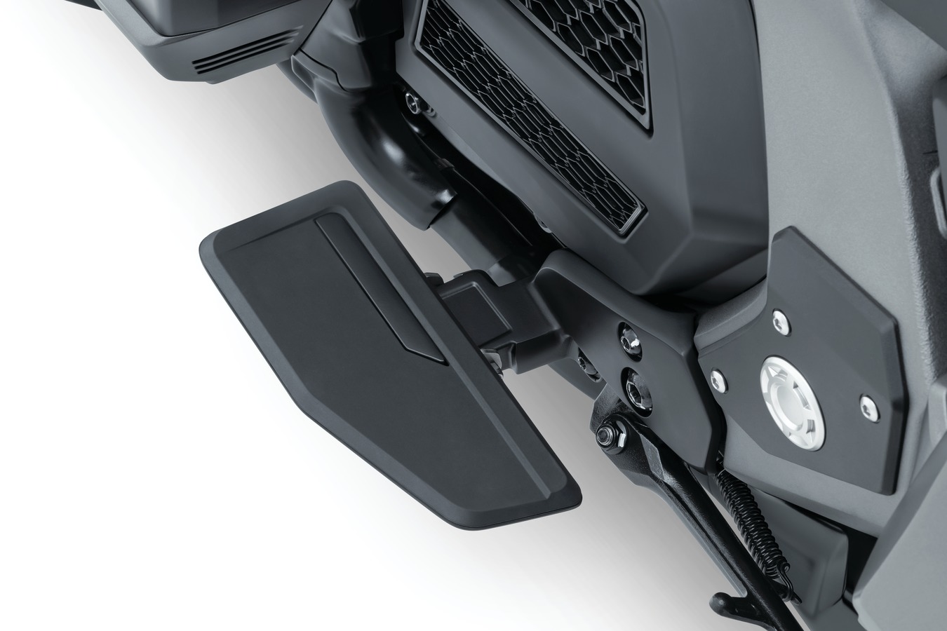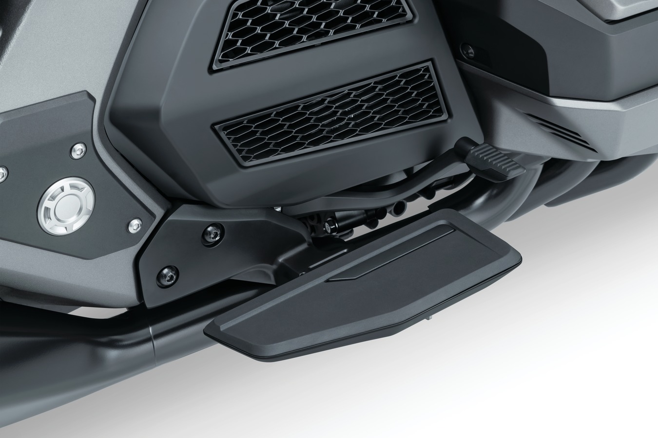 Cale-pieds plateau pilote Omni, offre près de cinq fois plus de surface que les repose-pieds Gold Wing d'origine. Construction en aluminium forgé durable. Comprend une pédale de frein assortie avec une surface supérieure en caoutchouc souple pour l'adhérence.