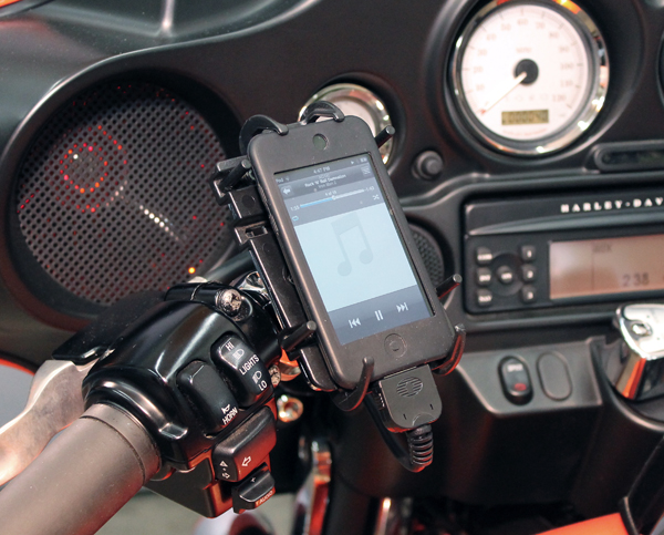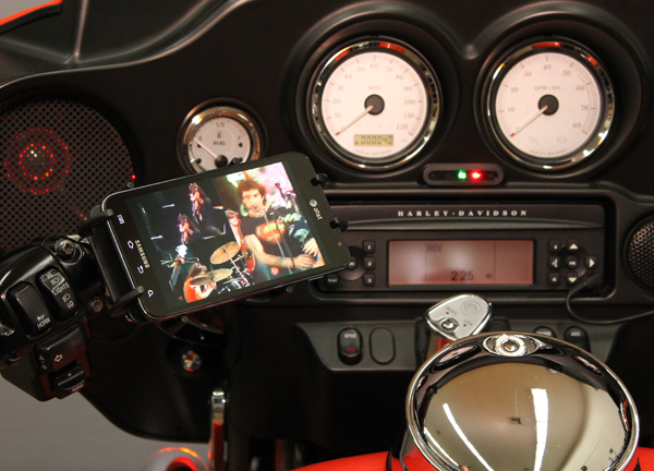 Harley radio, thru J&M’s new Bluetooth digital music controller.