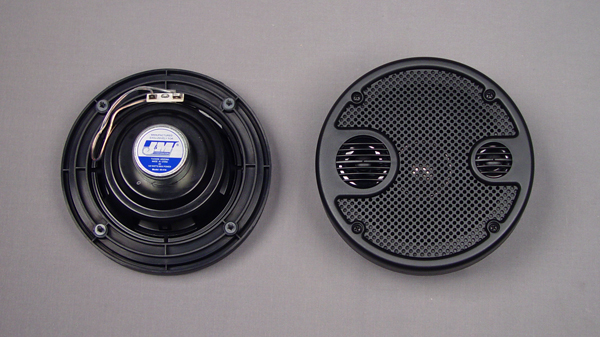 They feature a waterproof injection-molded polycarbonate woofer cone, high-flux