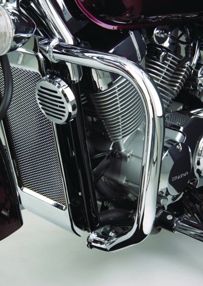 These chrome steel tube bars can accommodate our 1-1/4" clamps to mount our line of pegs for added riding comfort. Mounts to existing holes in the front frame with hardware provided. No drilling required. Bars only extend as far as the pegs on the bike.