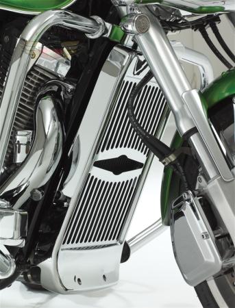 Montrez que des Accessoires Chromés ® ont mis à jour la conception de leurs Grillages de Radiateur VTX1800 pour inclure toutes les années modèles - Leur nouvelle Maille et des Grillages de Radiateur de style Celestar incorporent toujours la même grande protection pour votre Honda VTX1800, mais ont un regard courbé attirant mis à jour pour englober tous les modèles 2002-09. La conception de menton spéciale sur le fond du Grillage de Radiateur ajoute qu'une coutume compte sur votre Honda VTX1800. Fabriqué d'acier et ensuite le chrome plaqué, la Maille et les Grillages de Radiateur de style Celestar est un doit avoir pour votre Honda VTX1800. Le Grillage de Radiateur simplement boulons sur aux supports existants avec le matériel fourni, faisant installation facile. Intensifiez le regard de votre Honda VTX1800 avec des Accessoires de Chrome d'Exposition ® le Grillage de Radiateur.