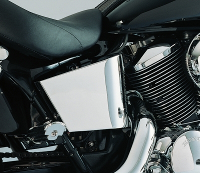 Les couvertures latérales de chrome sont une manière simple d'ajouter un accent stupéfiant au côté de n'importe quel moto à une grande valeur. Les couvertures latérales de chrome remplacent les couvertures latérales peintes par OEM. Bâti avec le matériel existant.