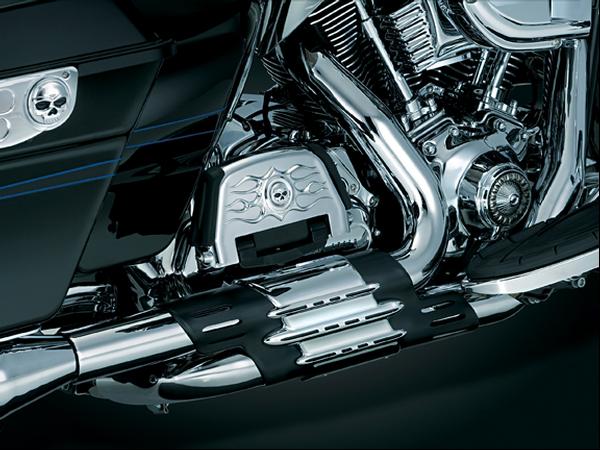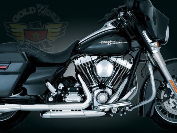 Kuryakyn's Crusher Duals with Power Cell integrate a unique crossover for increased horsepower and torque. Like having an ace up your sleeve, the crossover is hidden by a clean looking, stylized heat shield. With Crusher Duals, heat is drastically reduced for the passenger. Much like the stock 2009 design, the left pipe is no longer routed above the left footrest. It runs beneath the motorcycle, well away from the passenger's feet & legs. Crusher Duals with Power Cell include heat shields, mounting hardware & are fitted with oxygen sensor ports. All that's left to do is choose the mufflers to complete your high-performance package-Crushers or Beast Ovals.Fits: All ’09 Electra Glides, Road Glides, Street Glides, & Road Kings.488, Crusher Duals with Power Cell (set).