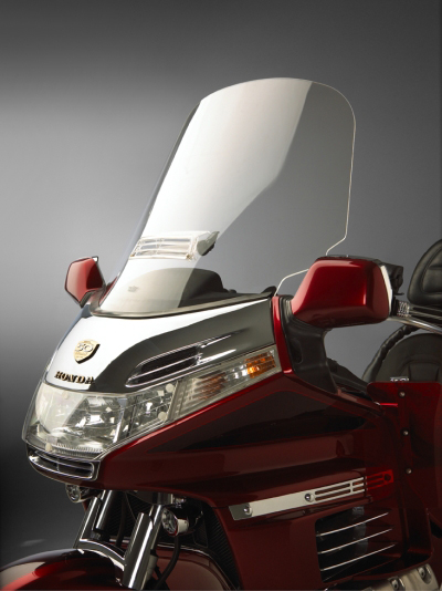 This custom Tour Windshield for the GL1500/6 retains the excellent design and aerodynamics of the GL1500/6, while offering considerably more rider and passenger protection with an additional 3-1⁄2" in height, 2" in width than stock OEM windshields. Made of Lucite® acrylic for the best in optical clarity. Fits GL1500/6 88-00