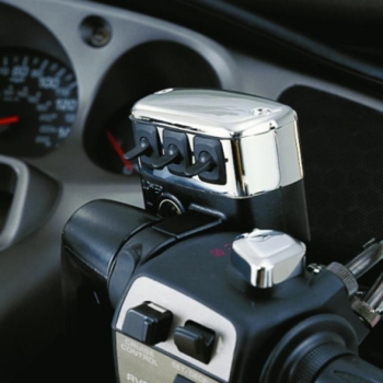 Boîtier inter GL1800 gauche adapte le maître cylindre de côté gauche et loge trois commutateurs pour les commandes auxiliaires d'éclairage.