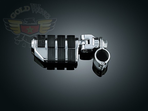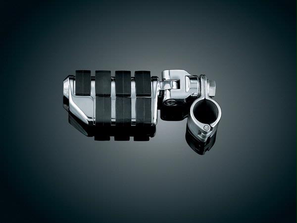 U.S. Patent D411,440 This is our most popular style of highway peg. Using our patented Magnum Quick Clamp, they are a snap to install & provide long-haul comfort. There are several styles of footpegs to choose from with various sized clamps to accommodate most common engine guard diameters. They can be installed on any round tubing (frames or engine guards), but it is important to keep in mind that the footpeg itself will end up perpendicular to the bar to which it is mounted.