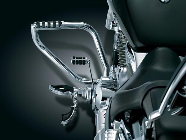 Enjoy stretched out cruising comfort & a degree of engine protection without obtrusive looks. We've honed this popular cruise peg/engine guard combo into a simpler product by using a new static peg design. The legendary comfort & clean low profile styling is untouched. Enjoy the evolution of this great system at a new lower price. 4582, Engine Guard with Footpegs for All VTX1300 Models (set)