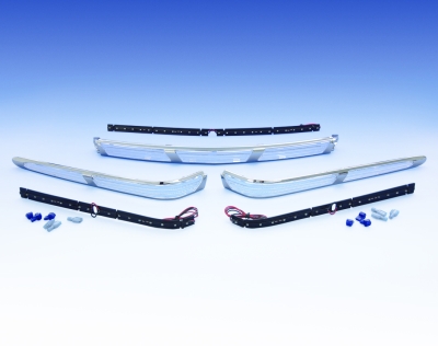These light dramatically improve safety by maximizing the amount of illumination on the back and sides of the GL1800. Installs into existing OEM recess. The weather resistant LED light strip is attached to a custom contoured plastic plate that matches the shape of mounting location. They mount easily with double sided tape already applied. Trunk Moldings contain 56 LEDs. Fits Honda GL1800 Gold Wing .