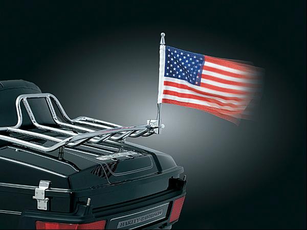 Pride. Love of country. Respect. Whatever the reason you choose to display Old Glory or remember our P.O.W.'s, these flags deserve to be displayed with honor & in their best light. Mount straight, securely, & with dignity. 1/2" verson fits most luggage racks or any 1/2" tubing including front fender rails. 3/4" verson fits saddlebag rails or any 3/4" tubing. American Flag is 6"x11" & P.O.W. MIA Flag is 6"x9".