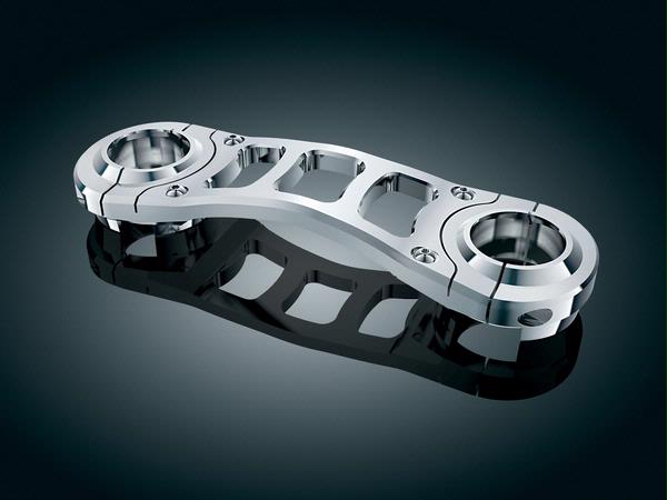 We could not find a fork brace on the market that had the necessary adjustments to cover the variable working tolerances a Gold Wing inherently has. Two piece braces do not allow for any manufacturing variation that affects the width of fork; this can lead to premature wear of the bushings and seals. We went to Crossroads Performance to design everything needed for a top-flight brace. We can now offer you a superbly stylish show chromed fork brace. We’ve seen nothing on the market that compares. It will give you the look and the rock solid handling your high-performance GL1800 demands.