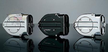 Küryakyn offers a select number of complete Hypercharger kits assembled with a Blood Groove style trap door. The Blood Groove Trap Doors offer a styling alternative to standard trap doors; you get the same impressive performance no matter which style you choose.‘91-’06 Sportster Models with Stock Carb, Includes Küryakyn Crankcase Breather.9989, Black Body with Black Blood Groove Trap Door (lettered) & Black Butterflies.