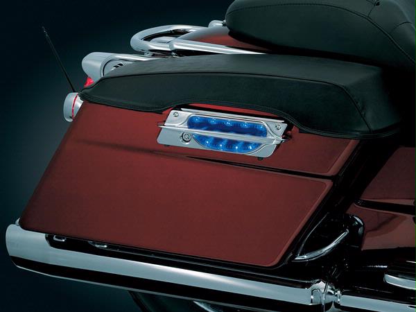 The illusion of infinite depth & an array of solid, pulsing, or continuously changing colors that fade into oblivion; you’re going to have to see this to believe it. Multi-function L.E.D.’s emit red, lime, ice blue, sky blue, dark blue, purple & green. The complete kit includes everything you need; latch bodies, wiring, & the controller. Stock lock assemblies are retained. Alone or combined with other Infinity & Super Lizard lighting kits, the impact is indescribable. Fits: ’93-’09 Electra Glides, Road Glides, Street Glides, Tour Glides & Road Kings with hard saddlebags