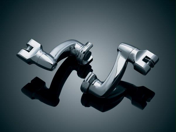 An extended version of our popular 7996. It's 3-1/4" radius gives an incredible 6-1/2" range of adjustment. It's gently curved shape keeps the peg tucked in toward the center line of the bike for maximum comfort. Incorporating an innovative locking device, this mount is guaranteed not to slip. 8016, Longhorn Offset Peg Mounts (pr).