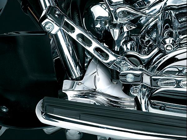 Engineered to shroud the lower portion of your bike frame, these distinctive chrome-plated covers hide the kickstand assembly, front engine stabilizer & the footboard mount. Instantly simplifies a usually unsightly area of the bike. Fits: ’91-’08 Touring Models with fairing lowers &/or oil coolers (Ultra Classic Electra Glides, Ultra Classic Tour Glides, ’03 & ’07-’08 FLHRSE, ’04-’05 FLHTCSE, ’06-’08 FLHTCUSE)
