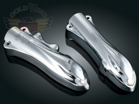 Everyone loves the look of a deliciously chromed front end. But until now, the time, labor, & expense of chroming FLST lower fork legs made this option much less tempting. Küryakyn Lower Leg Covers make this upgrade quick, easy, & affordable. Stylized stamped steel covers simply bolt securely into place right over the stock lower legs! The version for ’00-’07 Models also includes a matching caliper cover. You’ll have a classy shining look in no time &
