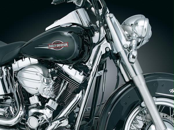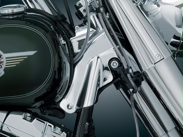 Masking the roughly finished forged frame neck on a Twin Cam Softail is now as easy as two screws & a few minutes of your time. We’ve designed smooth & cleanly contoured stamped steel neck covers to work on Softail Models equipped with fork tins (Heritage, Fat Boy, etc.) & Deuces. These beautifully chromed covers mask the wiring, giving your bike’s neck a finished appearance.Fits: ‘00-’06 FLST, FLSTC, FLSTF, FLSTN