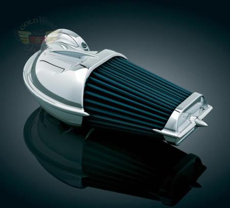 We tested many of our competitor's forward facing air cleaners & found them to be very restrictive. We designed many prototypes until we settled on this very aggressive, free flowing, trulyhigh-performance unit.The chrome-plated,die-cast housing with high-flow element, supplied by Advanced Flow Engineering (aFe), is easy to install & air-flow will support performance engines in excess of 100 H.P