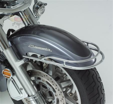Des rails d'Amortisseur de Devant incorporent une conception de rail de jumeau personnalisée, un rail supérieur et un rail de fond, ajouter l'accent chromé à votre vélo. Les rails montent solidement aux fourchettes de devant avec un quatre attachement de point pour réduire au minimum la vibration. Boulons sur à amortisseur original montant parenthèse.