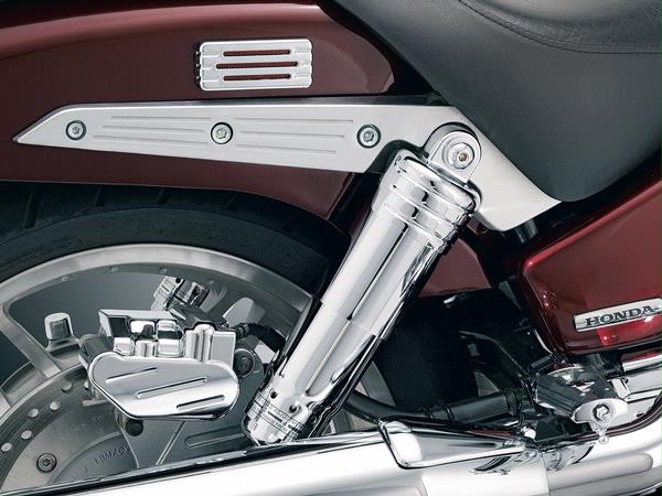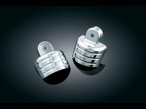 Chrome shocks with a dull chrome top mount? Not good. Finish the chrome all the way to the top with our Rear Shock Top Cover & notice the difference. With Küryakyn styled blood grooves, these covers finish the shock top out right.