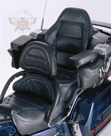 Our high quality color matched backrest pads, easily tilt forward for passenger access. A detachable storage pouch, designed to eliminate those annoying “flop-ups” caused by the wind, is included. Thick padded tube covers provide a clean custom fit. The Show Chrome plated tubing assembly can easily be adjusted fore and aft while sitting on any Honda GL1500/6 model.