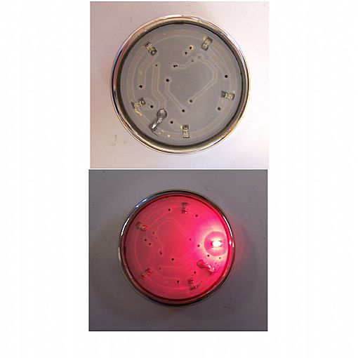 This red LED light can be used on any bike, trike, side-car, trailer or any kind of vehicle. The light contains 5 bright LEDs that light in a circular continuous motion for an eye catching light. It can be used on the license plate or anywhere on the bike as a decorative attention getter. Encased with a chrome housing. Measures 1 inch diameter. Sold single.