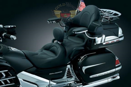 The ultimate in seating comfort for both of you! This plush seat adds full enjoyment back into riding your Wing. The full seat is 1" lower than stock with both contoured seat pockets pushed 1" to the rear. Angled back to cup your backside, the wider than stock 18" wide by 17" deep seat-pocket for driver & 18.5" wide by 13" deep seat-pocket for passenger, pulls you in - instead of pushing you out. A narrow front also aids in firmer ground footing for shorter riders. Coordinate with the stock passenger backrest pad or our Passenger Backrest for a more vertical seating position. Constructed from the highest-grade seat materials with premium rigid seat pan - you won't find a better seat on the market.