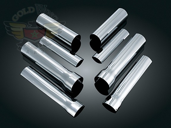 One doesn't see many full-on customs without a gleaming chrome front end. However, removal, disassembly, & the plating process means down time & significant cash outlay unless you use these slick Snap-On Chrome Fork Covers! They fit like a second skin, install in minutes, & the low price will leave you smiling! Choose smooth, full length covers with or without turn signal mounts.