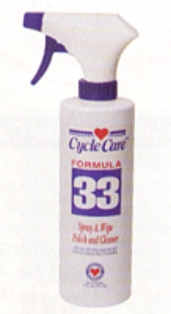 Cycle de soins de Formule 33 est conçu pour être utilisé comme une solution miracle ou tactile sur toutes les surfaces qui, normalement, ou antérieurement, être protégés par cycle Soins de la Formule 3 et est idéal pour les retouches de randonnée. Formule 33 aide offrir une protection contre les rayons UV, les pluies acides et l'accumulation de saleté. Il polir et de supprimer aussi les bugs, route de goudron et de la route film de pare-brise, peinture (clear coat) et de chrome. Non stries de protection et de l'eau répulsif briller. Ne pas nuire à la broche de décapage, de peinture ou des peintures murales sur mesure