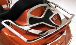 Support en aluminium de bagage de billette avec la marqueterie centrale en caoutchouc noire. Bâtis au couvercle de tronc avec le matériel fourni. Le forage est exigé. Fixez quatre mesures de système de support de point 23-1/2 "de large avant profond de x 14" au dos. Travaux avec le Hondaline spoiler. Ajustements Honda GL 1800 Gold Wing . Honda Valkyrie Interstate .