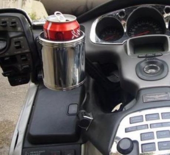 C'est le support ultime de boissons pour les conducteurs de Gold Wing. Son crochet unique s’attaché solidement aux commandes de guidon sur le GL1500 ou GL1800. Inclut la tasse de 16-ounce inoxydable. Disponible avec le crochet noir ou chromé et l’anneau