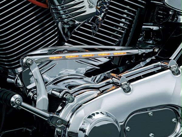 The Train Rod's sleek shape is reminiscent of the streamlined trains of the 30's and 40's while its integrated amber L.E.D.'s are right out of the 21st Century. Installs quickly and is easily wired into the bike's run circuit.