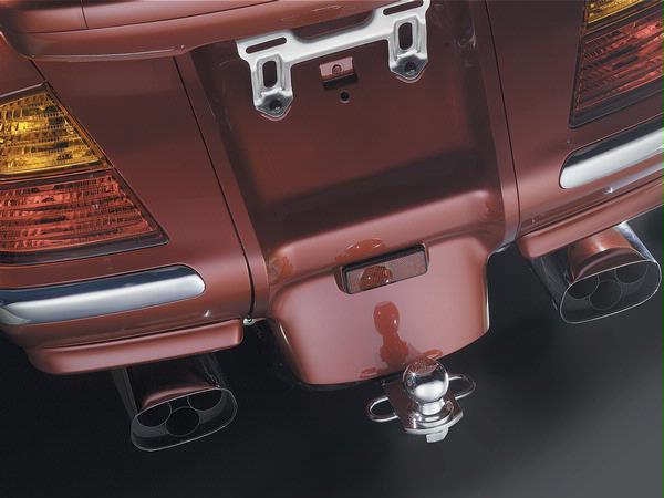 Our Trailer Hitch for the GL1800 is good looking, strong, & very easy to install. This hitch features a 6 point mounting system for superior strength & rigidity. Installation can be performed easily with the bike on it's center stand, & requires only a few common hand tools. When installed, the mounting framework is completely out of sight. Only the hitch & ball assembly & front mounting points are visible. The rear support plate is easily removed for quick & effortless tire changes. We feel there is no stronger, easier to install hitch available from any source, at any price.