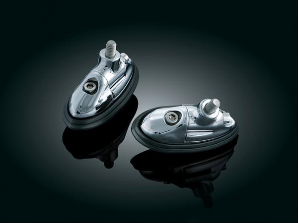 Replace your stock bug antenna mirrors & add the personal style you want with these adjustable Mirror Mounts for Sport Bikes. Simply select & add custom Küryakyn Mirrors or any other mirrors that mount with a 5/16-18 bolt. Quality die-cast construction finished in sparkling chrome with a black rubber mounting pad. These mounts are a must have.