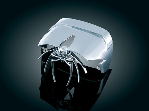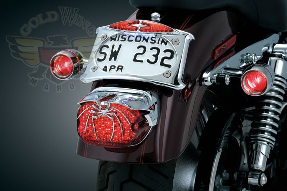 More evil per mile! The Widow Taillight Cover features a chrome 3-D Widow figure creeping across the taillight lens. In daylight it sparkles in the sun, in darkness an ominous silhouette is cast. Get caught up in the Widow’s web & add this venomous taillight cover to your collection of Widow themed accessories.Fits: ’73-’09 H-D Models without bobbed rear fenders (except ’97-’03 FLSTS, ’05-’07 FLSTSC, ’05-’09 FLSTN, ’00-’07 FXSTD, ’02-’09 V-Rod, ’08-’09 Rocker, ’09 FXDB)