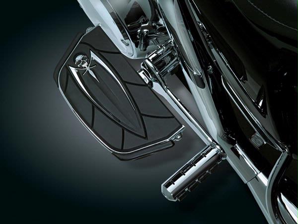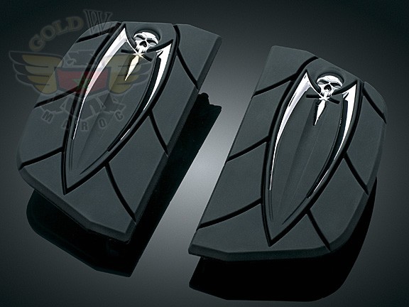 These Floorboard Covers are the newest member of the Zombie family. Created from a sculpted black rubber pad with a chromed inlay, they cast a longer, fleeting shadow. The specially designed rubber pad also helps keep your boots off the pipes. Exorcism not included.4572 ,Zombie Passenger Board Inserts Fits: ’86-’09 Electra Glides, Road Glides, Tour Glides & Road Kings with Traditional D-Shape Passenger Floorboards. Also fits all ’86-’09 Softail Models equipped with H-D accessory Passenger Floorboard Kits using Traditional D-Shape Floorboards.