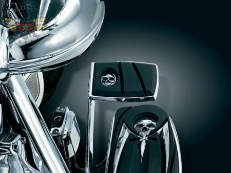 Unique style and durability make these pegs, brake pedal pads, and shift peg a stunning addition to your bike. All feature beautiful chrome with durable rubber pads and our ominous Zombie skull. To make a wicked thing even better, Küryakyn offers many other Zombie accessories so you can carry this theme throughout your bike.