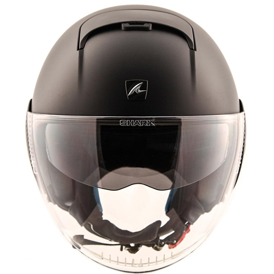Cet écran est également pourvu de déflecteurs pour les écoulements d'air et de 2 sorties d'air profilées. Soucieux de vous apporter le meilleur en termes de confort, Shark a muni son casque jet Nano Blank Mat d'une visière solaire interne traitée anti-rayures et labellisée UV380.