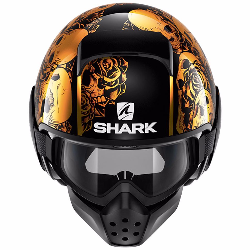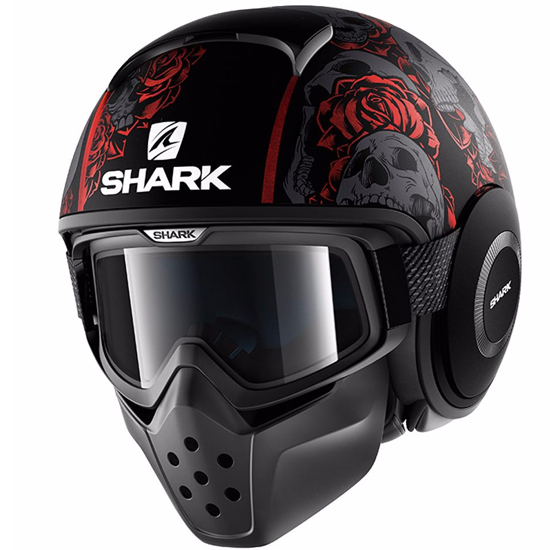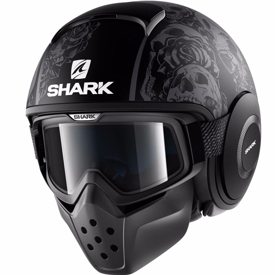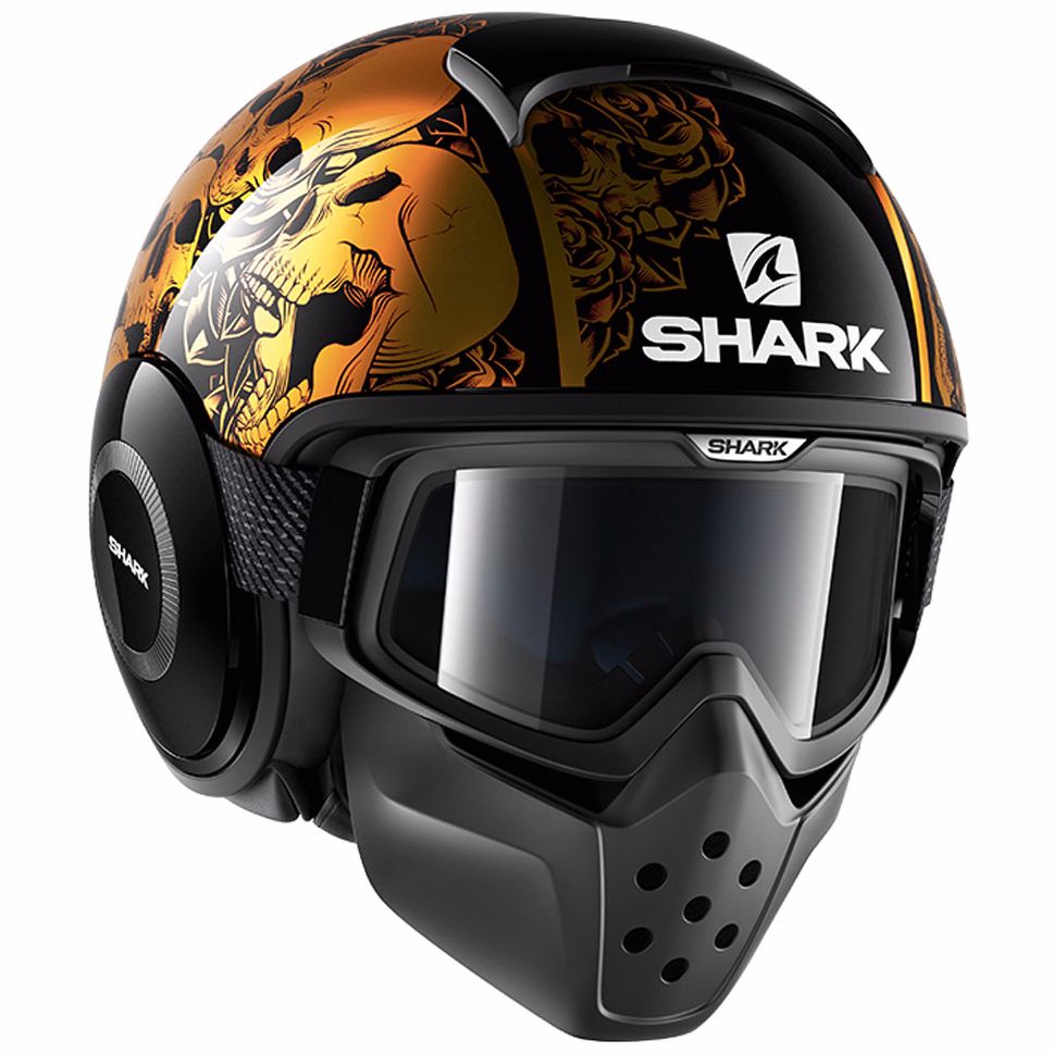 Le Drak (anciennement appelé Raw) est un ovni tout droit débarqué du film Mad Max ou d’une partie de Paint Ball, il bouleverse les codes établis.Il surprend par son esthétique hors du commun, Shark a remplacé l'écran classique des jets par un combo googles et masque semi rigide, dont les attaches élastiques sont dissimulées par le kit de fixation, pour un look des plus décalés.