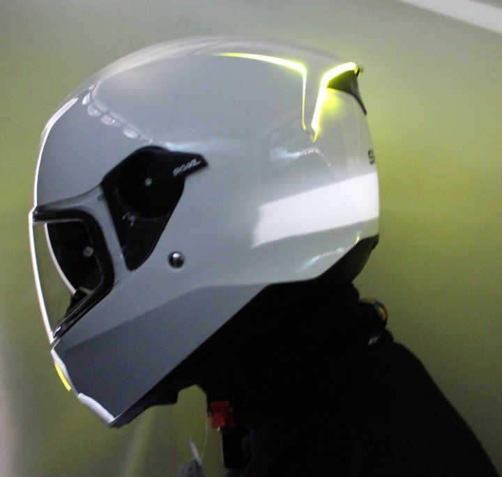 Lorsque vous les activez, les discrets bandeaux translucides présents sur le casque se transforment en bandes brillantes de couleur vert/jaune apportant une grande luminosité. Un plus tant en matière de design qu'en matière de visibilité auprès des autres utilisateurs de la route.