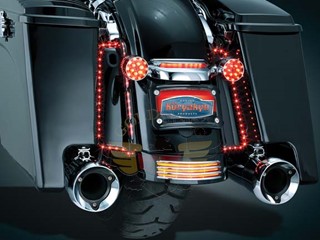 Kuryakyn 7744 Gloss Black Rear Fednder Strip LightAdd additional Run & Brake L.E.D. lighting to your rear end! The gently curved chrome housings sit perfectly in the contour of the '09-'11 rear fender skirt but also looks great on most any full-length fender. Plug-&-play.Rear fender strip lights add additional Run &Brake L.E.D. lighting to your rear end!The gently curved chrome housings sit perfectly in the contour of the 09-11 rear fender skirt but also looks great on most any full-length fender.Plug-&-play.NOTE: For H-D Touring and Softail models 09-up with full length rear fenders and universal application on other models with full length fenders with flat sidesPARTS INCLUDED