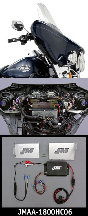 This exciting new J&M 2-channel 180w fairing speaker amplifier kit has been design specifically for use in the 2006-2013 Harley® Street/Ultra/ElectraGlide fairing with the Harley HK radio. (this particular kit will NOT fit the 2011-2013 RoadGlide Fairing)