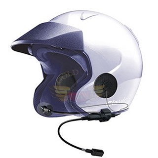 It features our high-output AeroMike® III miniature boom microphone, (tuned for use with all factory installed motorcycle audio systems) two of our wide-fidelity ultra-slim helmet speakers in stereo, our universal clamp-on mounting system and the upper section (only) of our PA-series 8-pin straight-plug hook-up cord.